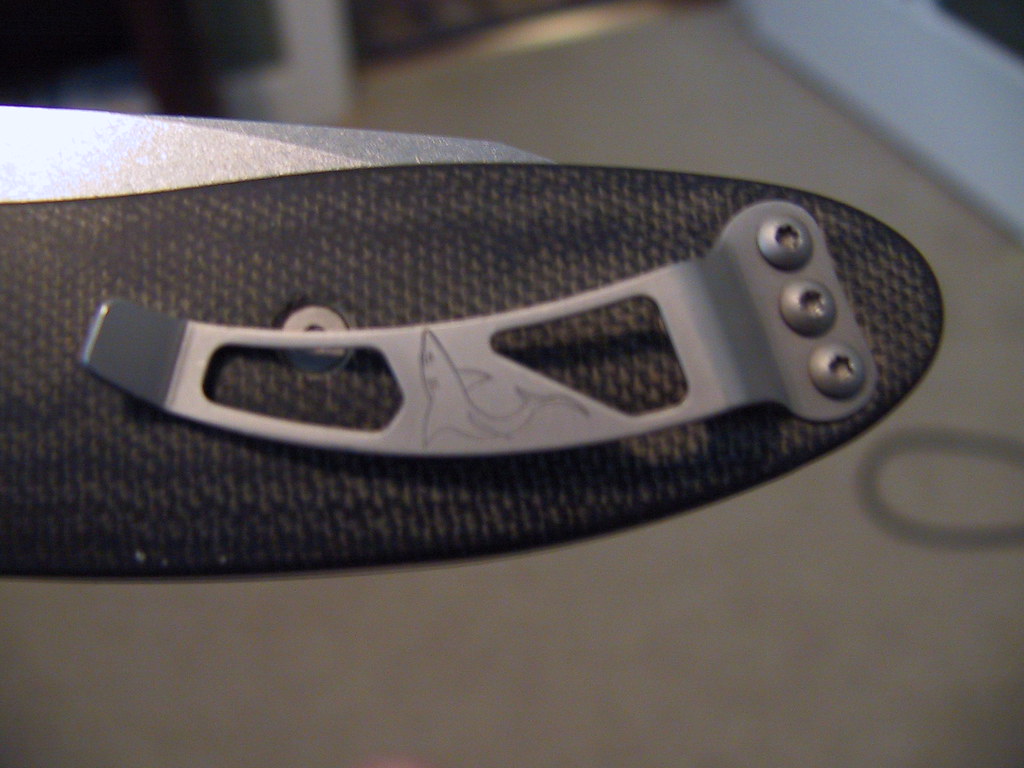 - Pocket Clip: Full Hard Stainless Steel (Lightfoot Shark). Clip is solid, no scratches, excellent with very very light signs of wear.