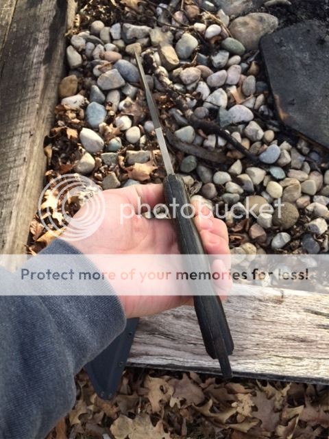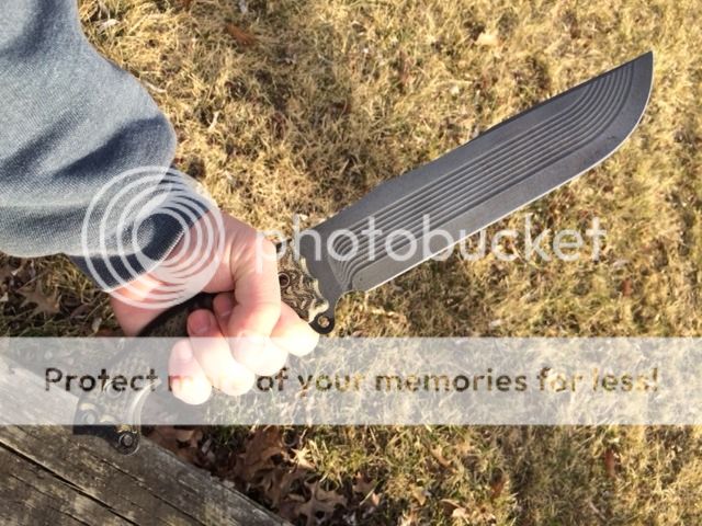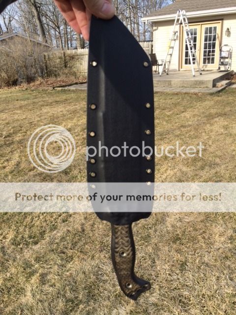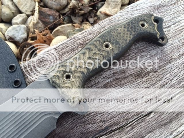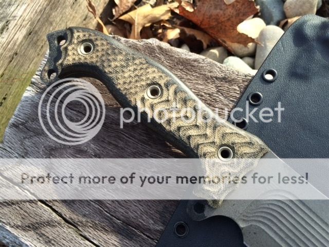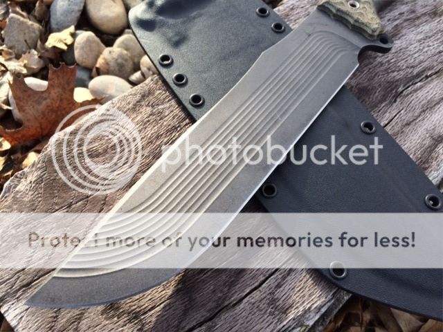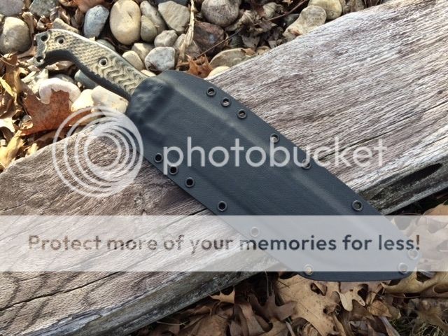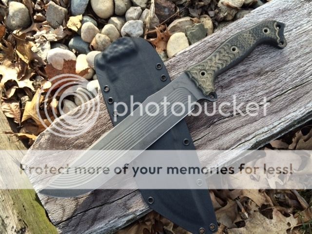 About the knife-I traded for this bad mutha over 5 years ago. Its from the original run. It was the busse that got me into busse big time. Prior to owning this one I had a ms, scrofa, razor & nmsfno, all meh, then I got this and fell in love. Lightly used it, stripped it, used it some more and thats about it. It still has its original edge. The edge is good to go, has a few slight burrs but nothing at all major. It has black standard sized micarta. I sold its original sheath long ago but just made it a kydex one for it a couple days ago and it works great. Set up for teklok (not included). For around $50 busse can re-coat this bad boy and make it look new again if you so desire.