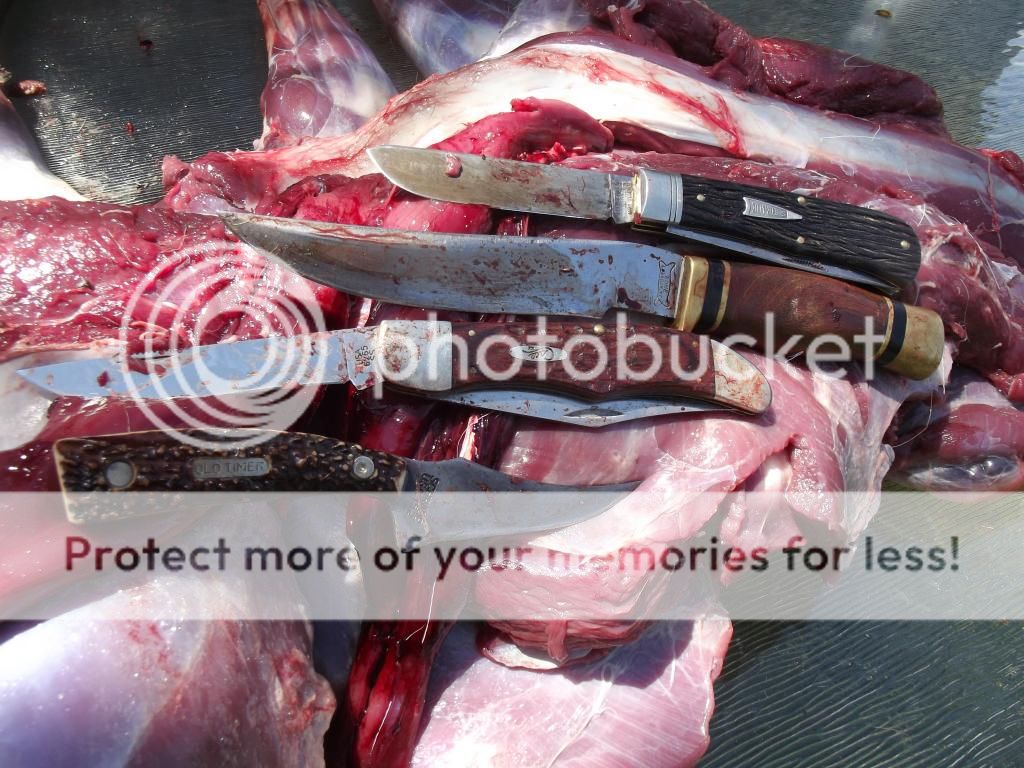 Skinned and boned out the next morning with the following traditionals....Case Hunter,Sharp finger and my beloved Schrade (GEC) #23 Trapper.....A good day and decision........FES