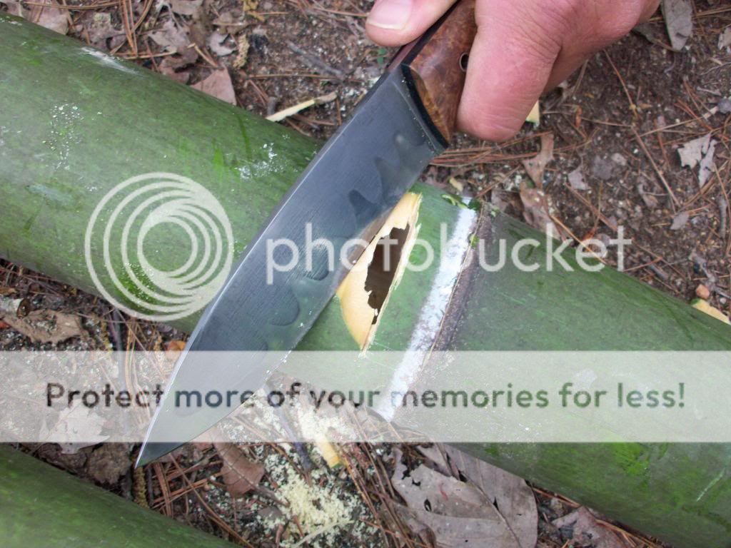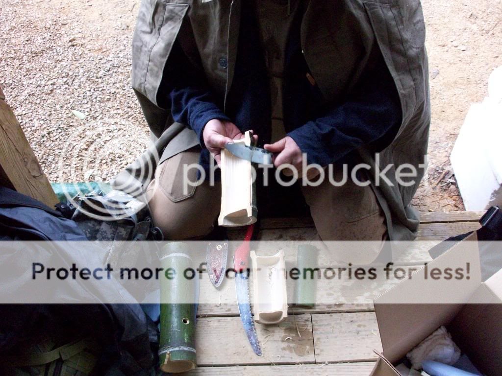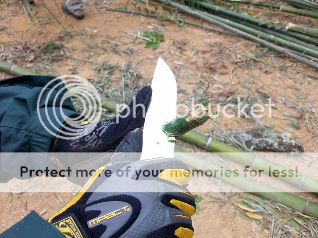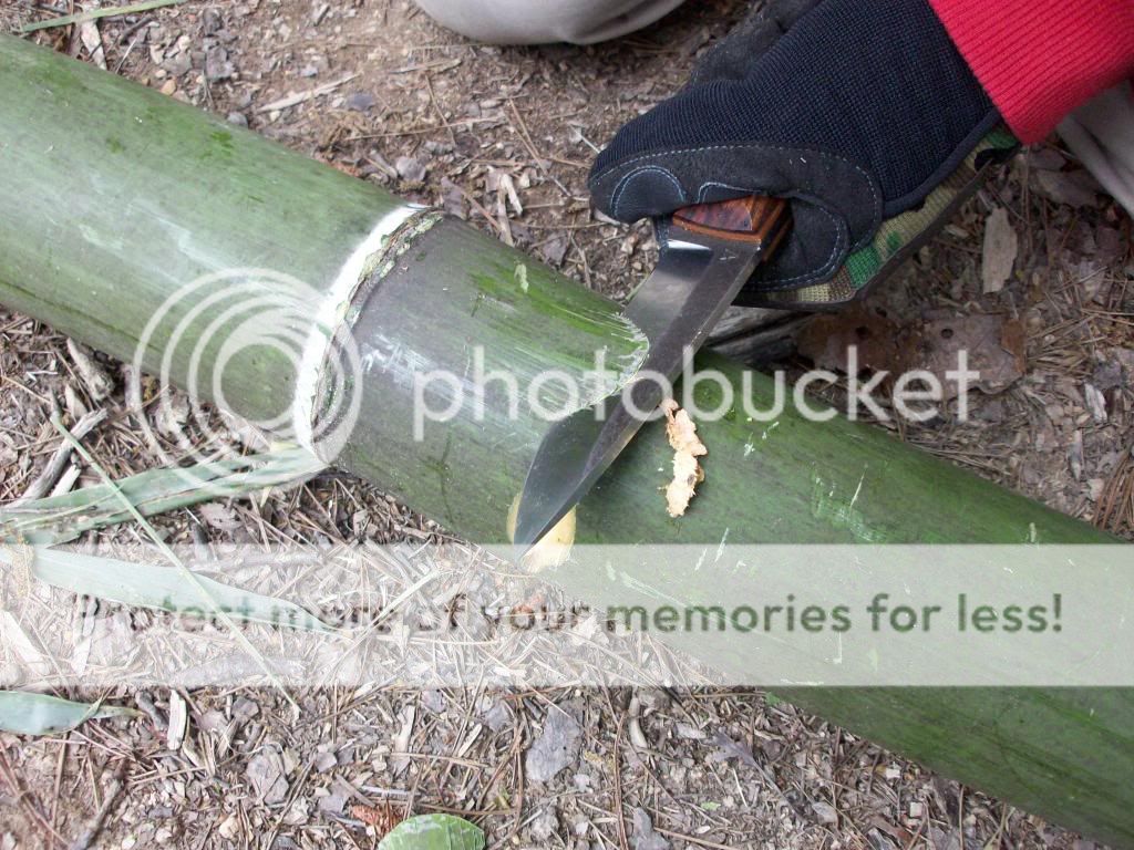 Based on this statement, Ethan and I decided that fresh cut green bamboo would be our medium of choice for the bushcraft/camp knife. Slicing was considered a secondary function, that fell under the guise of carving/cutting. With that, we setup our challenge.
