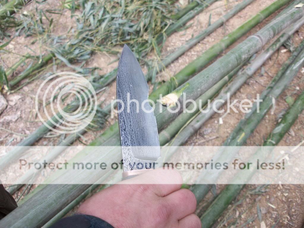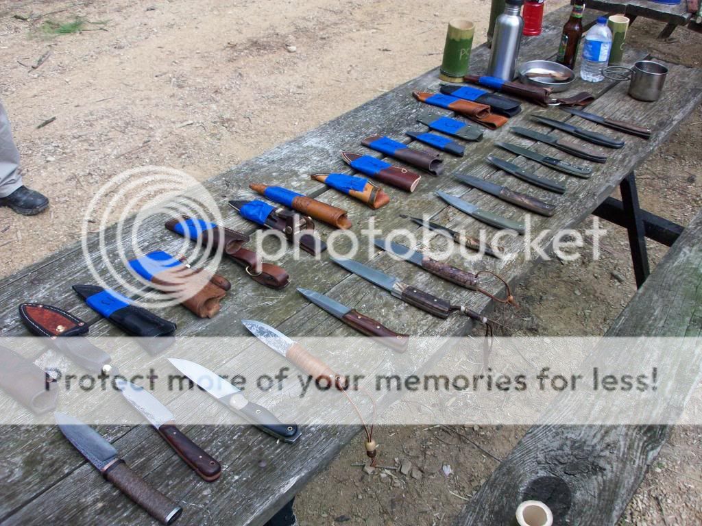 Each knife was set out, used for two days, by all testers, for various tasks, with the most strenuous being used in the construction of a green bamboo bed/platform/shelter. Some knives were batonned, lightly, and by lightly, I mean used to score the bamboo rounds. Only 4 knives were "beat", and that came at the affirmation of the maker. We had 3 makers onsight, and the fourth was a friend of mine, that I could speak for in regards to the use of his knife.