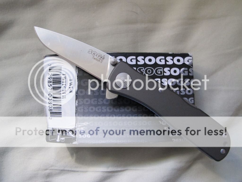 Sog Twitch II. Like new with box, lightly carried never sharpened.