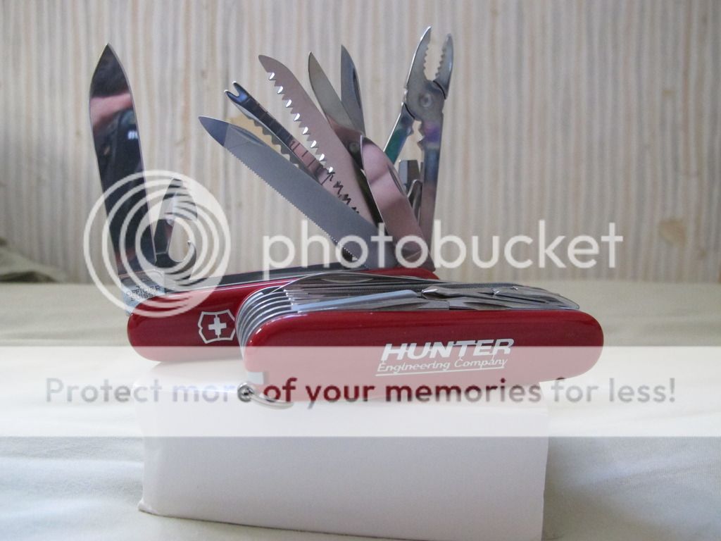 Two Victorinox Swiss Army company promo Knives. Blades marked officer model.