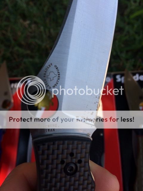 Purchased Used on this forum, has some spots near the bottom of the blade, cold use a sharpening.
