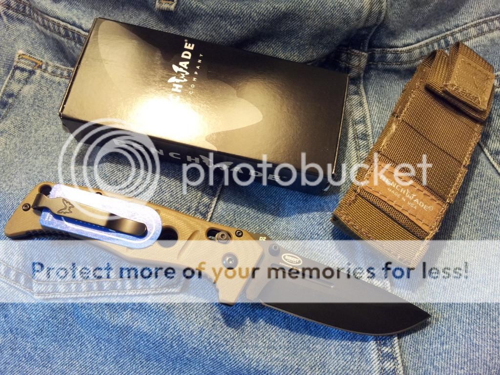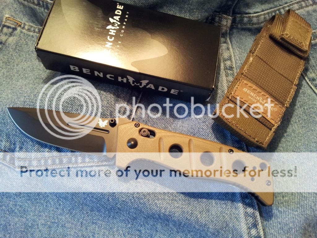 Benchmade Adamas- Safe Queen. This is the newer version with true tan G10. Comes with sheath, box and papers....$OLD