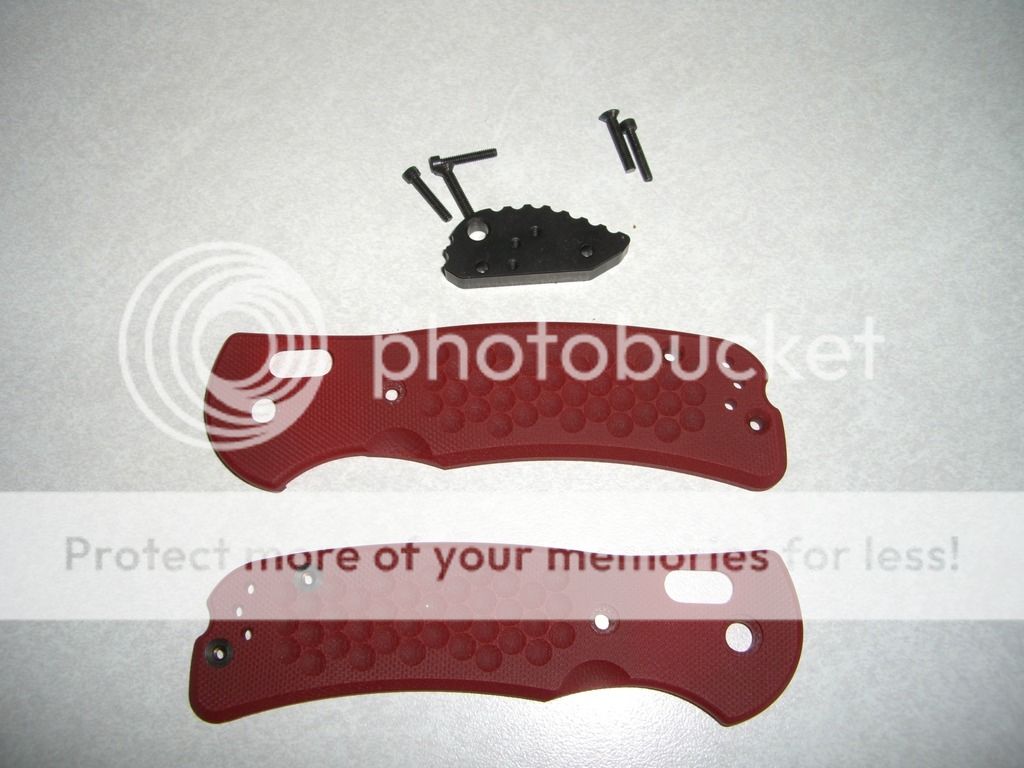 Wilkins red g10 scales for Benchmade Griptilian. These were mounted on a griptilian but never used or carried at all. Screws and back spacer included. $80 shipped.