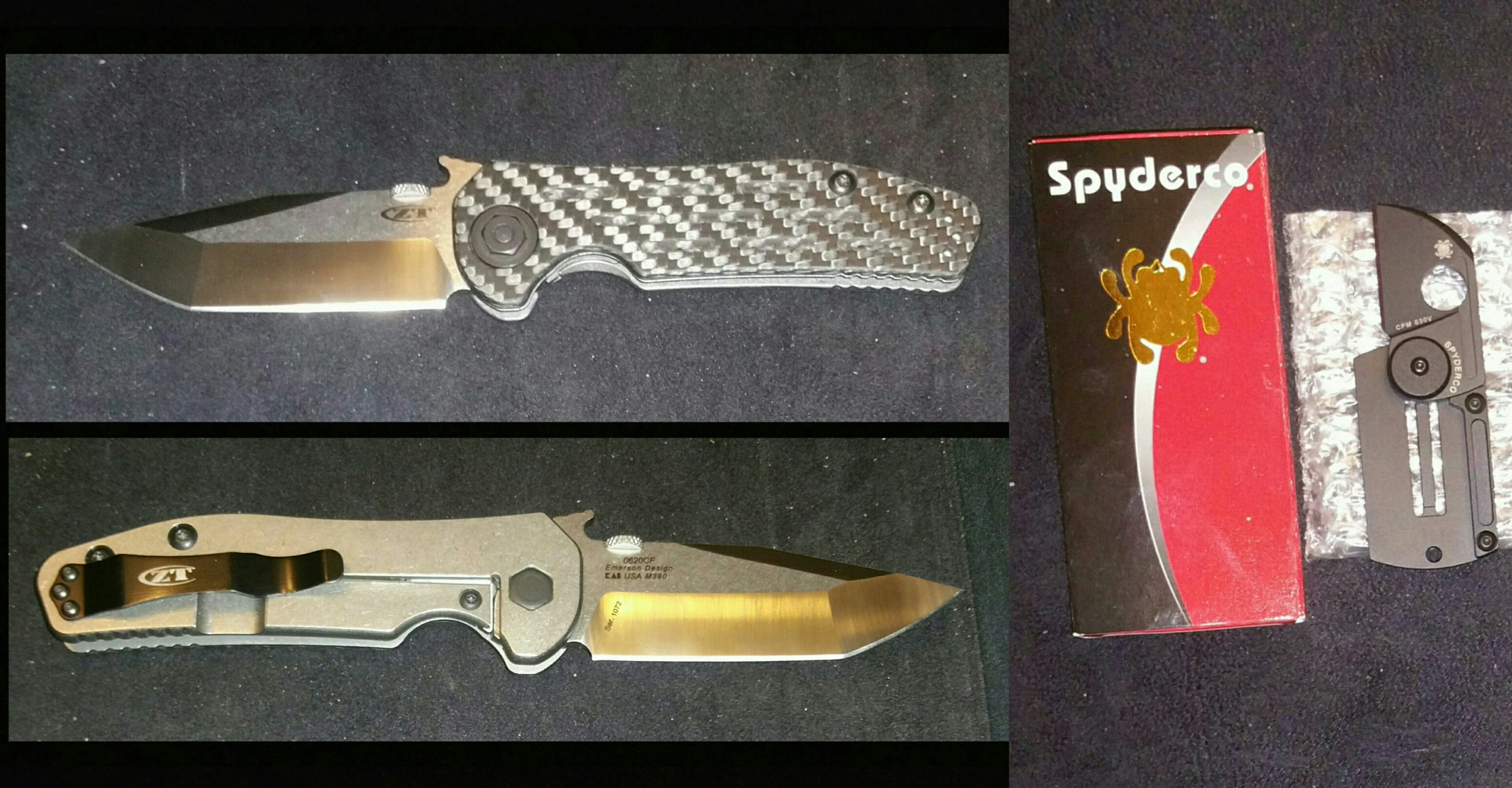 ZT 0620CF with M390 steel. Never carried or sharpened. Sold!!! shipped! Spyderco Black Dogtag knife. 47.00 Shipped!
