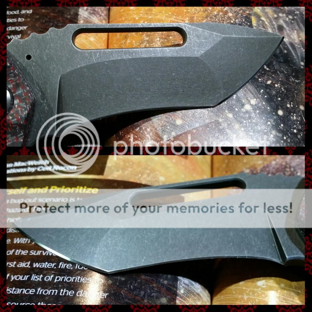 Spyderco Lava. Not used to cut anything. Factory edge. Centered. Polished liners. Some faint scatches on the metal backspacer.
