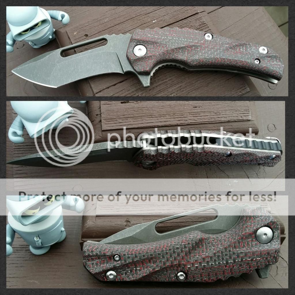 Brous Reloader that I have fully pimped. Lnib. #480 of 500 I made custom red lightning strike carbon fiber handles in a similar pattern to the original ones. Acid and stone washed the blade. Put a mirror edge on it. Very sharp. Smooth and centered. Comes with the cardboard box and plastic padded case. I can email more pics if needed.