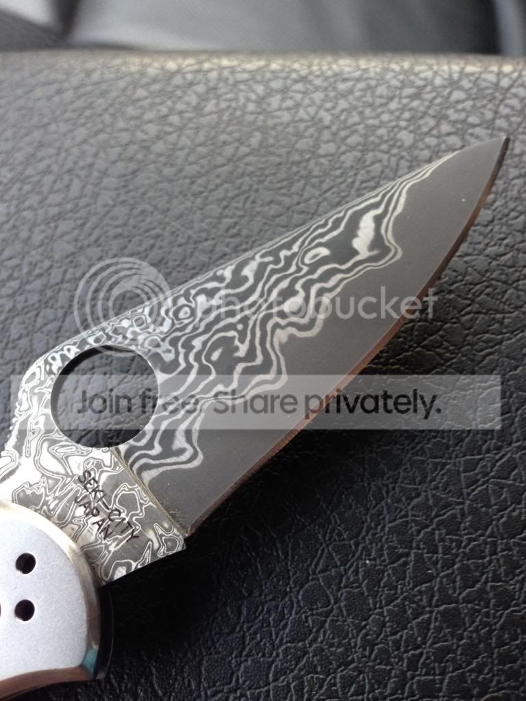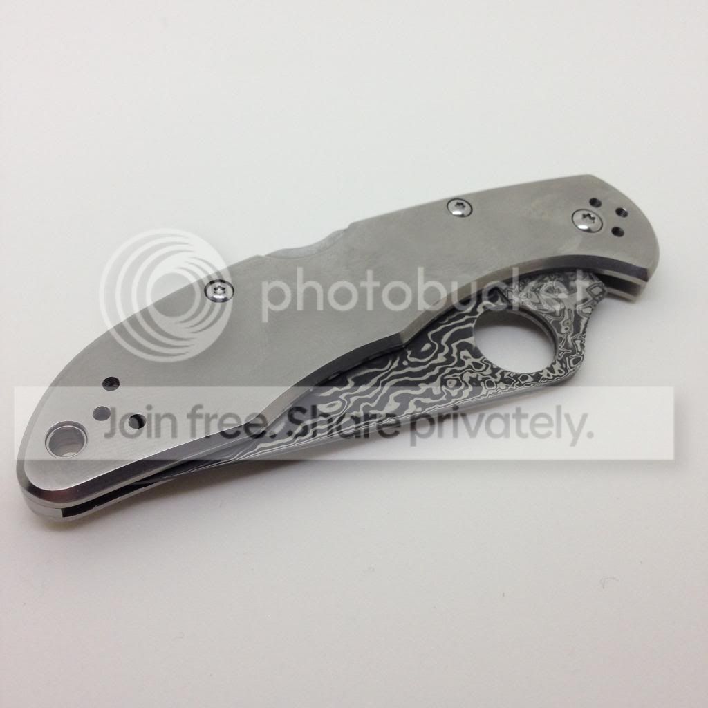 Sorry the handle has some fingerprints in the picture. This satin Ti takes fingerprints really easily.