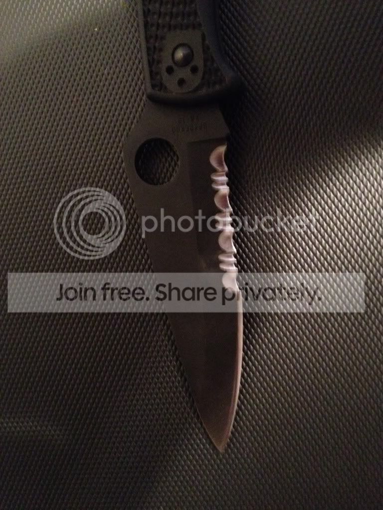Up for sale is a Spyderco Endura 4, black FRN, black blade, combo edge. This knife has been used but not abused. There is some wear on the coating (see pictures), which is normal for this TiNi coating. It could also use a sharpening but other than that this knife is in great shape. I just do not like the CE and would rather turn it into something that will get some use. I'm asking $50 OBO shipped conus, PP gift or add fees. If you have any questions feel free to PM me or e-mail, which will be faster. Thanks for looking!