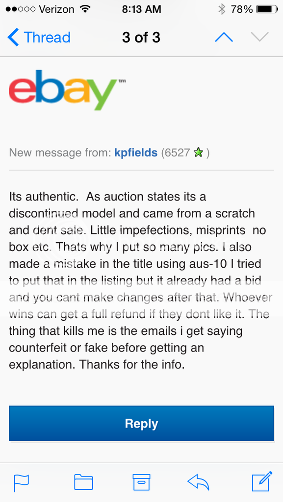 Please, do NOT link to any of the stores that sell these items, why give these thieves free advertising? It is much better to simply post a picture, crop out the name of the "seller" and post it for comparison. Again, the only way to guarantee you buy a legitimate/genuine item is to buy from legitimate stores. By trying to save a few bucks you can end up on the receiving end of something that is worth less than your perceived savings, and it may be potentially unsafe.