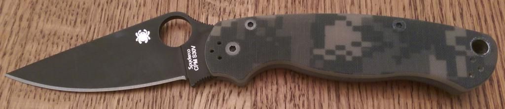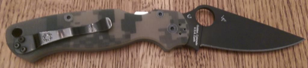 Spyderco PM2 Camo G10/DLC; light user, still has very sharp factory edge, may have been stropped, don't really mind if this one doesn't sell. $130.00 shipped/insured/PayPal'ed. GONE!