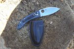 This is an unused Spyderco Lum C65CFP in like new condition. Has Nishijin Glass Fiber scales. VG-10 bladeLocks up tight and is perfectly centered . Does not have a mark on it and Has not been used. Comes with custom leather sheath. $PF