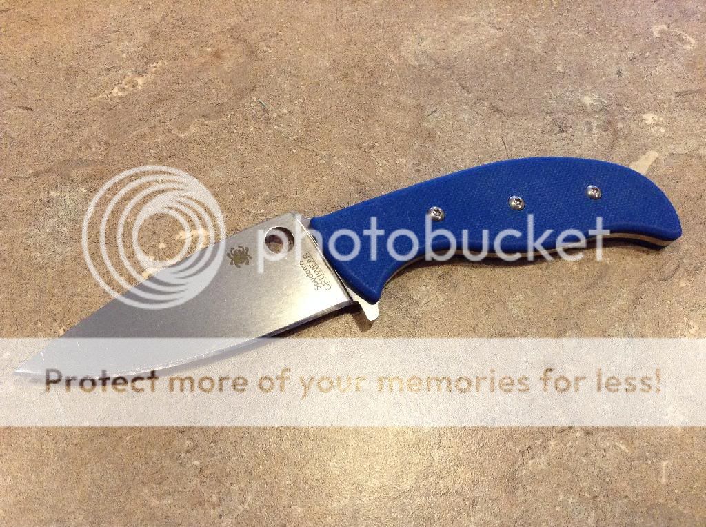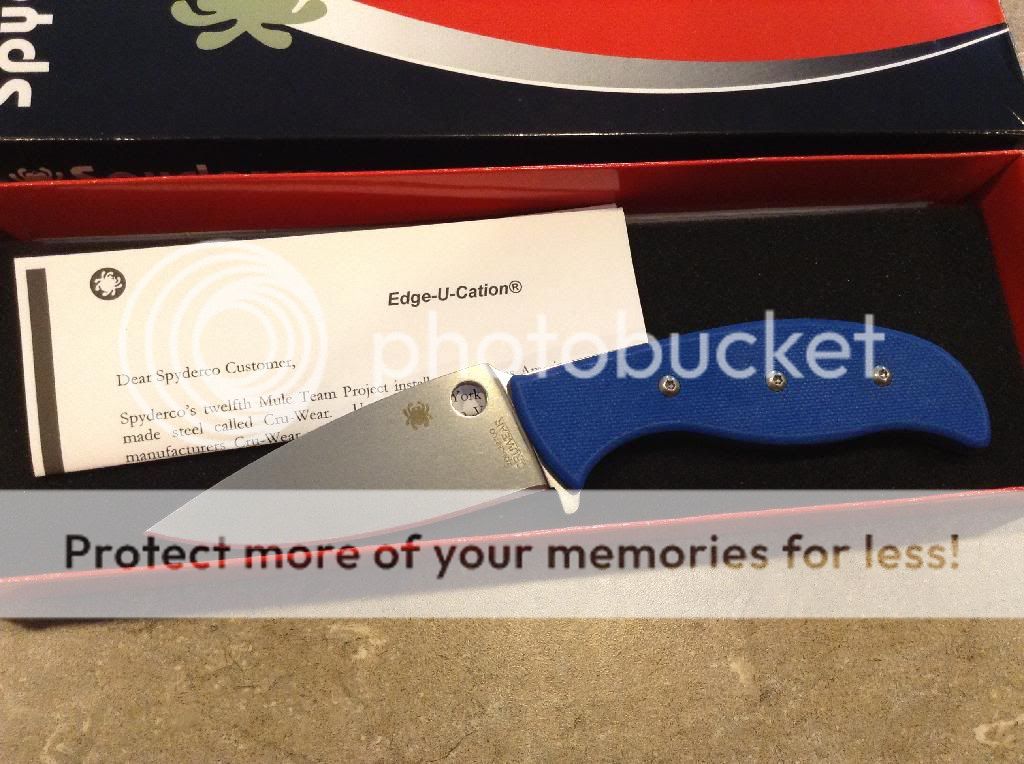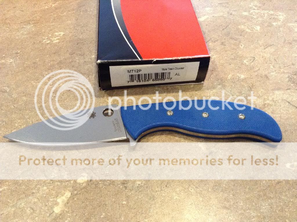 Lightly used in my kitchen. Spyderco mule team cru wear. Comes with halpern titanium slim blue g-10 scales. Box and papers included. This knife has been sharpened on my wicked edge. $SPF$$$$ net via Paypal includes shipping to U.S. Post I'll take it here and PM or email gleasonknives(at)hotmail(dot)com