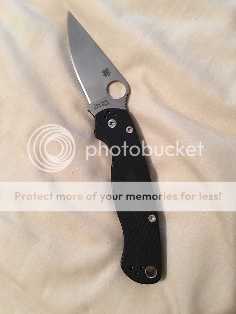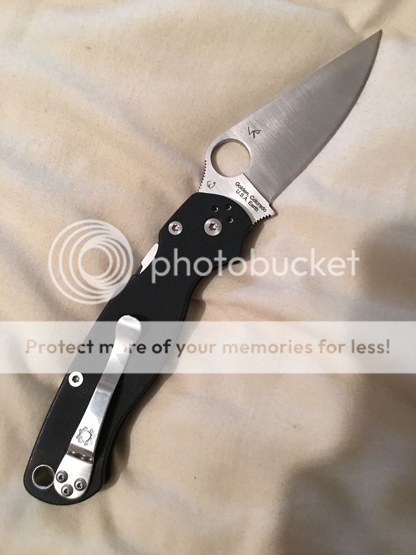 Up for sale is a used para 2 black g10 s30v. This was sitting with a knife pimper for 14 mj ths waiting to get customized was supposed to take 4 months so i had him refund me and send my mnife back so now i am selling it. It is used. Edge is still factory i believe and still sharp. Some light ware marks on the g10 nothing to bad. Pocket clip has been switched to tip up. Some light scratches on blade. Blade is off center a bit. And there is some blade play. I have not tried to fine tune this. Dont expect to be getting a brand new para 2 like i said this has been carried/used. Comes with box. Asking $75.00 shipped. Paypal only. Will ship usps to the lower 48. First ill take it followed by immediate payment gets it.