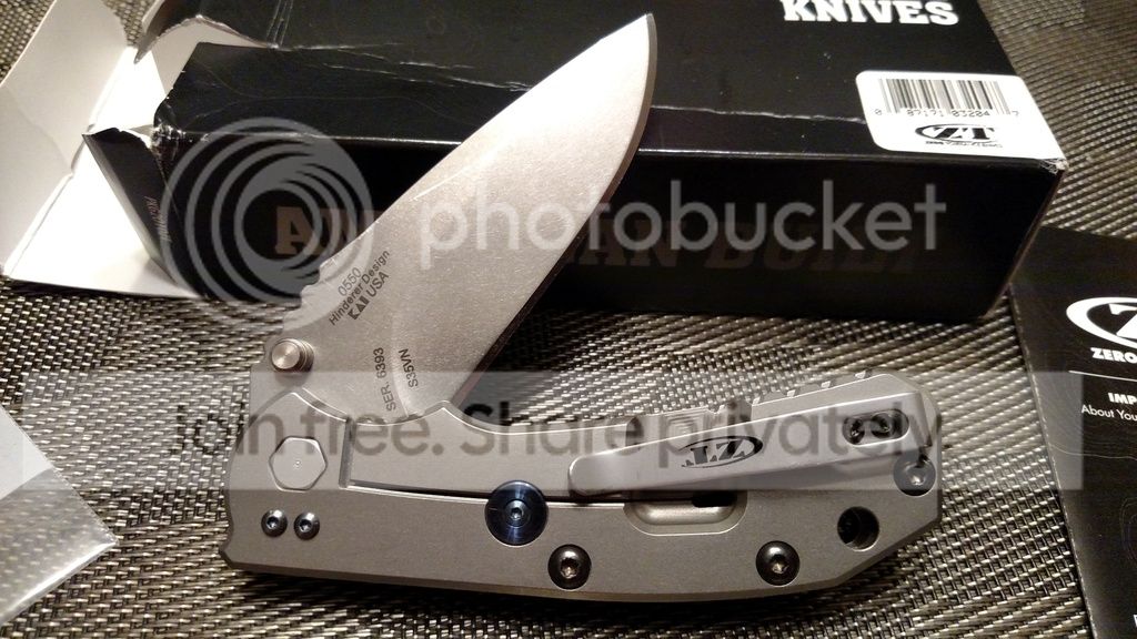 Next up is a 2nd gen zt0550 that has been used and sharpened. It had a mirror edge on it, which has been scratched up a bit, also has a very very small nick in the blade (see picture, i tried my best to show it). The lock-up is rock solid and centering is spot on. Overall great condition for a knife intended to be used!