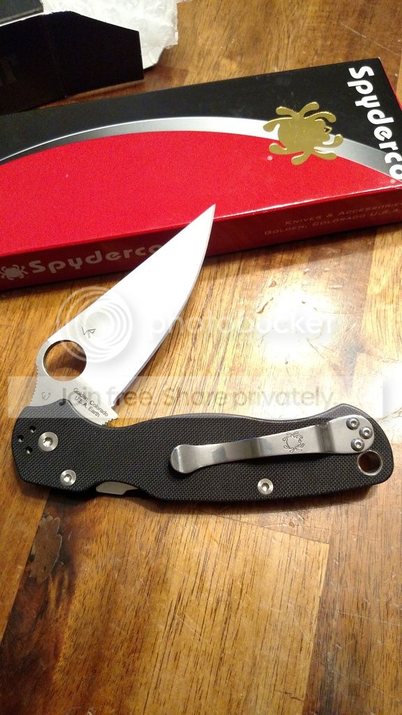 First I have for sale a Spyderco PM2 that i bought new about a month ago, carried a few times but never cut anything. Everything is in excellent, like new, condition except the clip, which shows some wear. Lock up is solid and blade centering is spot on.
