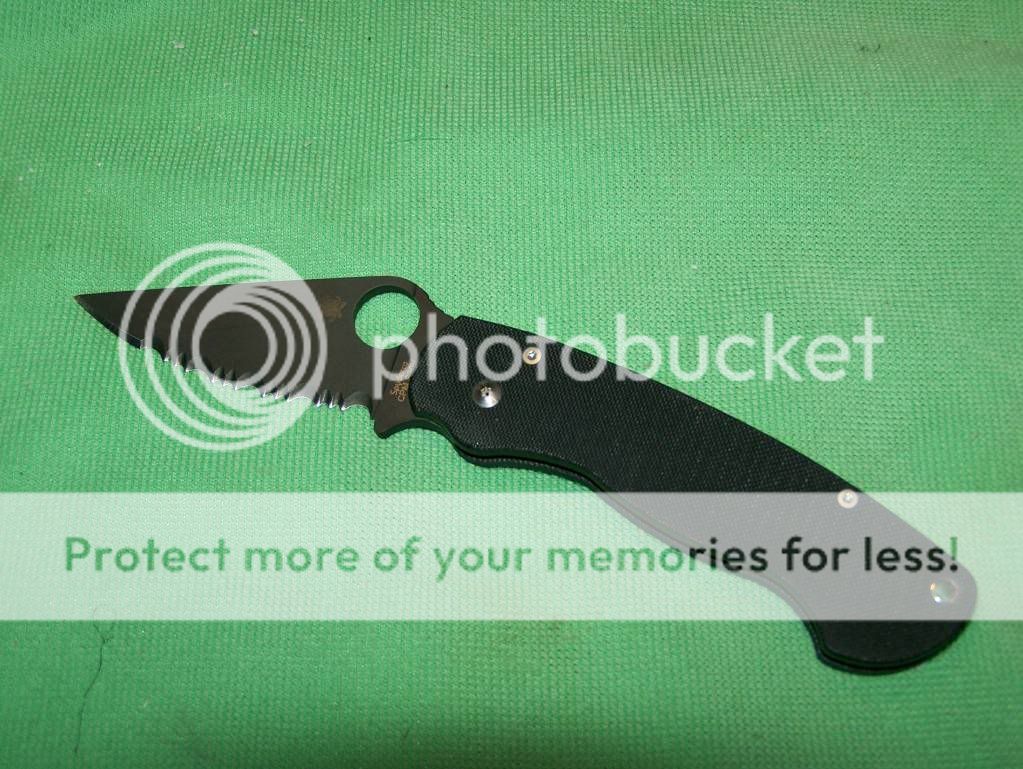 One Spyderco Paramilitary black blade, full serrated (C81GSBK). Carried a bit but not used much, still has factory edge and box.