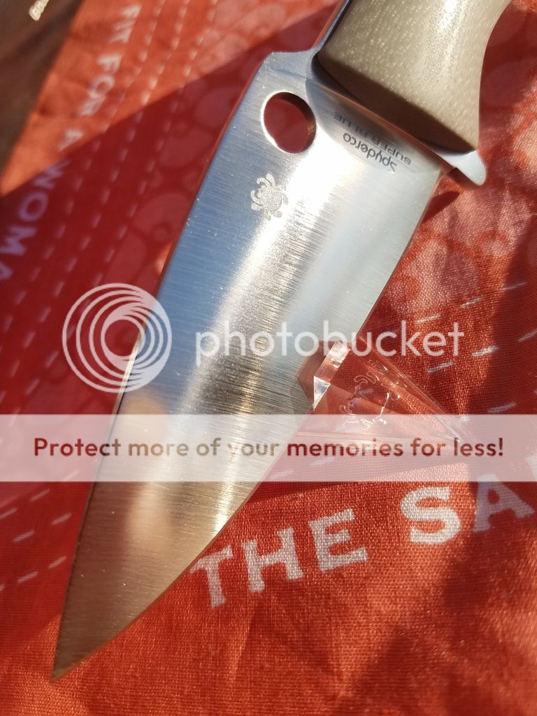 Brand New / Excellent condition Spydero Mule Team 08 Superblue - $sold shipped CONUS. Original Owner, used a number of times in the kitchen. Blade is in excellent shape overall. The original factory edge has never been sharpened and is still quite sharp. Sheath has excellent retention. I don't believe I have the box but if that is a deal breaker I may be able to find it. Excuse the smudges in the photos.