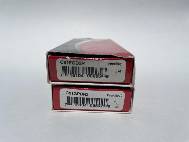 2) Spyderco Paramilitary 2, S35VN, Earth color scales, satin clip, satin blade. $150 shipped PPFF.