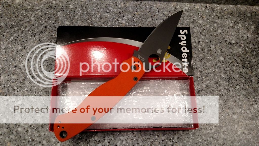 I have one user and one that has been in the safe for almost 2 years. The one up for grabs is of course the safe queen. All paperwork, box, and a razor sharp never used PM2 in the Cutlery Shoppe exclusive orange g10.
