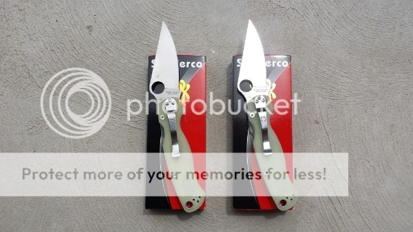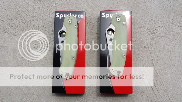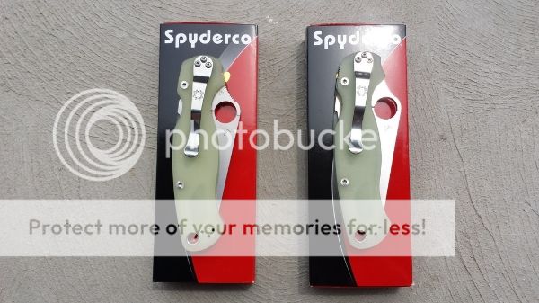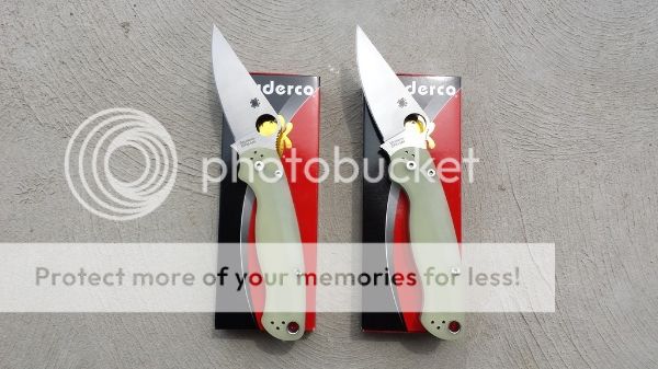 I bought these knives with the intention of keeping at least one of them, but after seeing them in person I realized they are a hair too thick for me. I've taken both of them out of their packages to make sure that they didn't have any issues, but other than that they are BNIB. Both of them have great centering, action, and lockup. One of them has a particularly strong detent, so if that is desirable to you let me know. The jade G-10 looks great in person, my pictures do not do it justice.