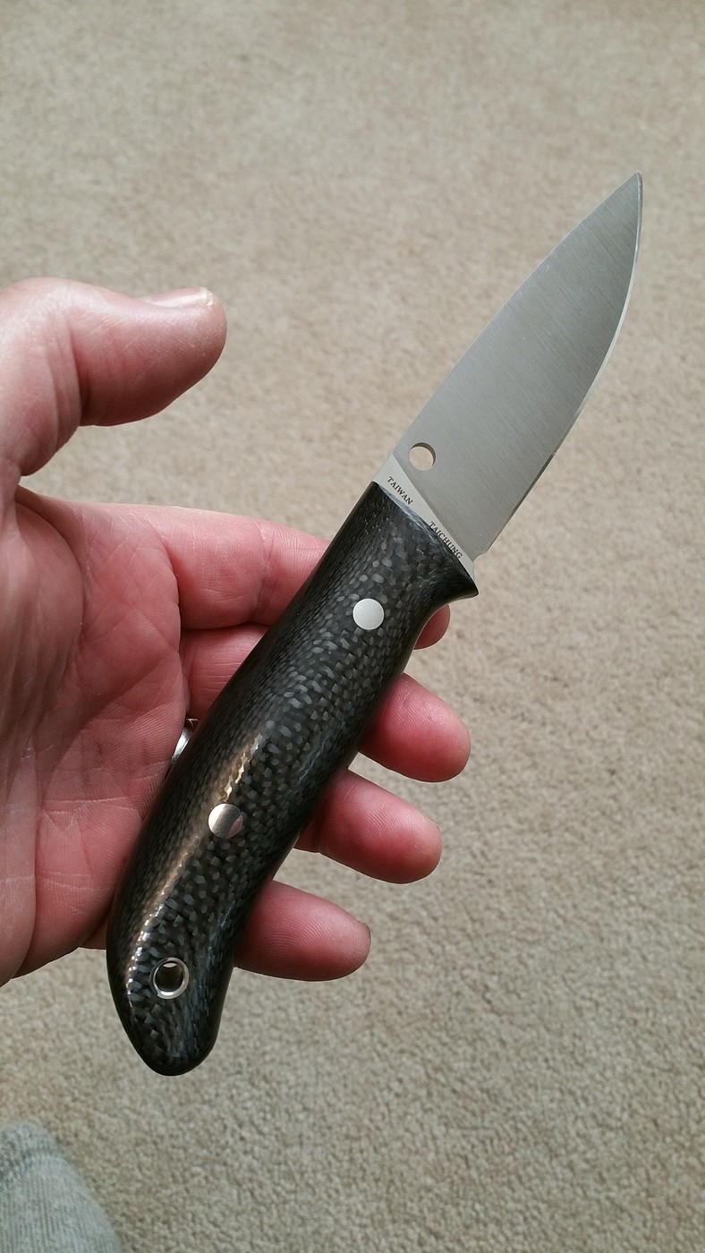 Catch and release... Spyderco Proficient (CPM S90V w/ Carbon Fiber handle and nice ambidextrous sheath). I picked this up second-hand a couple weeks ago. Sweet knife in all respects but I'm just not diggin' the carbon fiber handles. I put a mirror edge on it with my Wicked Edge...scary sharp! ...and as close to the factory edge geometry as I could get. Other than that, it's as new. Asking what I paid (which was a bargain!) $205 (SOLD)
