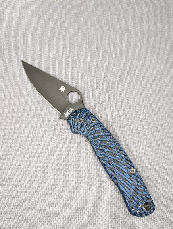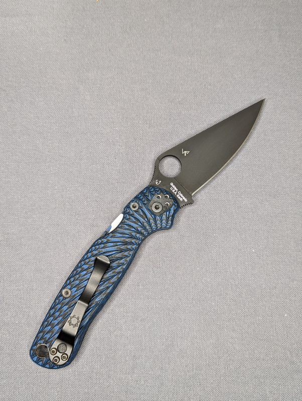 Spyderco Para 2 Black DLC - Blue/Black G-10 Scales - There are some dings on the lanyard tube, tried to show in pic. Also comes with original black G-10 scales. - $110