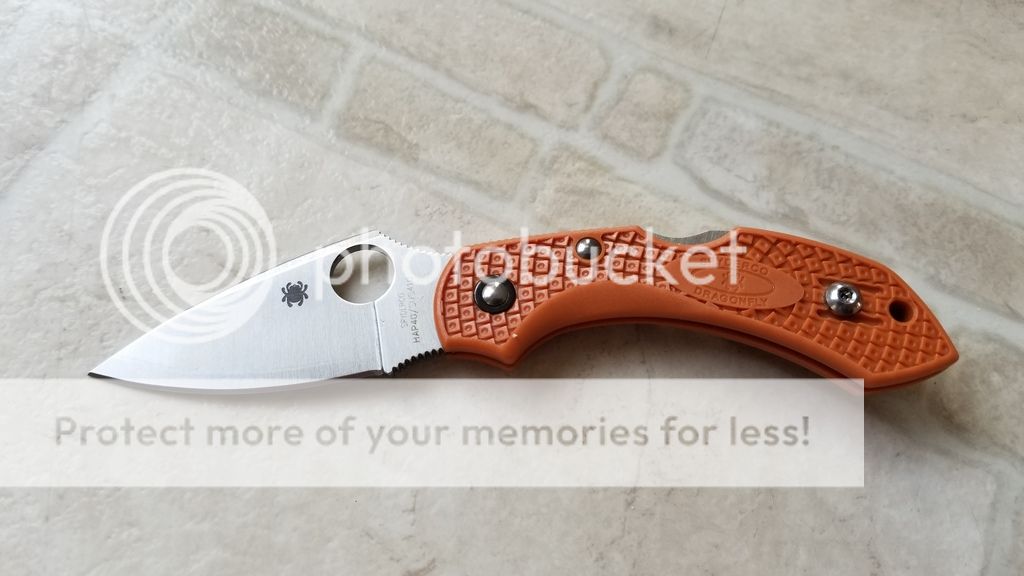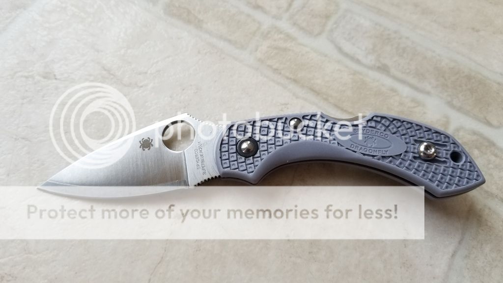 3. Dragonfly 2 Super Blue Sprint: carried it for a week a number of years ago so the blade has a couple scratches and a patina formed. Smooth action and no blade play. The lock bar is not flush with the blade, but I believe it will be once the knife is broken in (that has been my experience with dragonflies anyway). Knife comes with original box. Asking $160