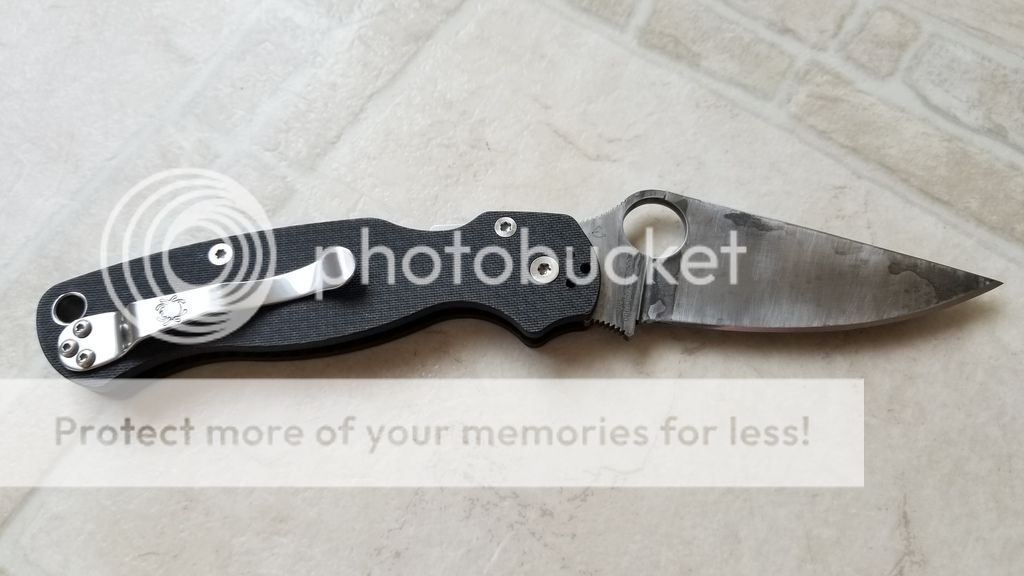 2. Paramilitary 2 Carbon Fibre M4 Sprint run: used and sharpened. Blade is heavily scratched and patina'd. Action is smooth and there is no vertical play. There is very slight horizontal play if you really force it, but this can be tightened out with the pivot screw. Knife comes with original box. Asking $175 SOLD