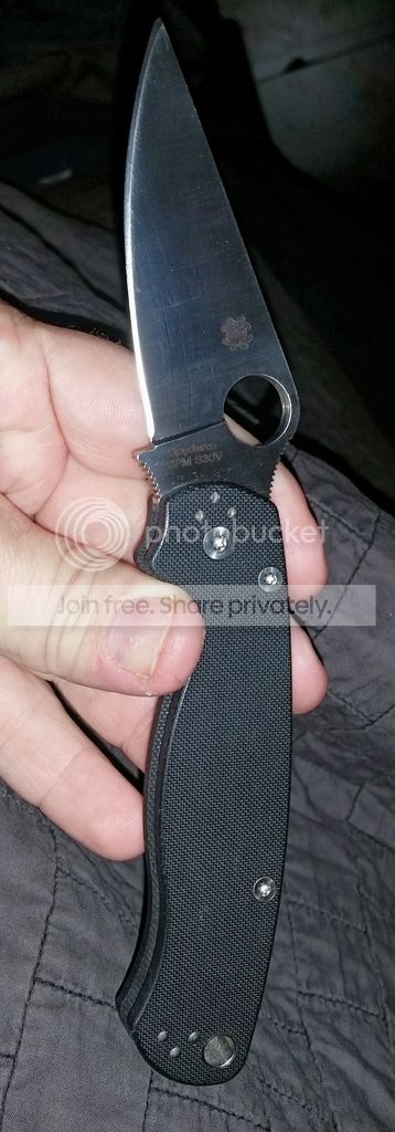 Black G10, S30v steel, black pocket clip, box included. Good lockup, smooth action, centered blade. havent used it, have taken it out of box. Extremely clean, very solid all the way around.