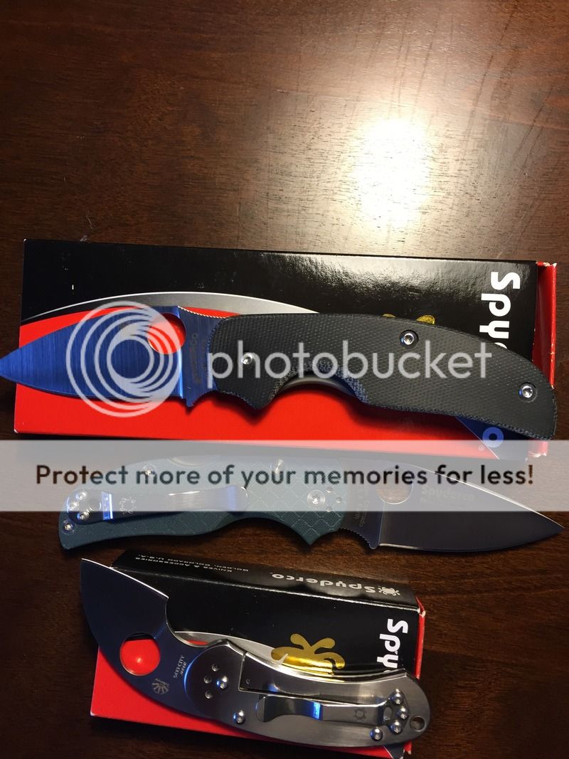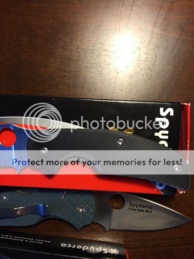 First up, my Spyderco Native 5 Forum 2013 in S110V steel. This knife is a second, though I'm not sure why. The only thing I could see is the print on the blade is a little blurry. Perfectly centered, sharp, solid lock with no play I can discern. Lightly honed on white fine ceramics just to polish the edge, otherwise unused. Centering is perfect. No box. $118 reduced to 110.
