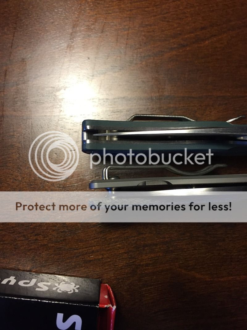 I also have a Spyderco Sage 2. This knife was modified to have a Micarta handle on the display side. Blade lightly honed on ceramics. As you can see, the centering is towards the display-side, but not in danger of touching. I do not have the original Titanium scale, but I do have the box and papers. $SOLD