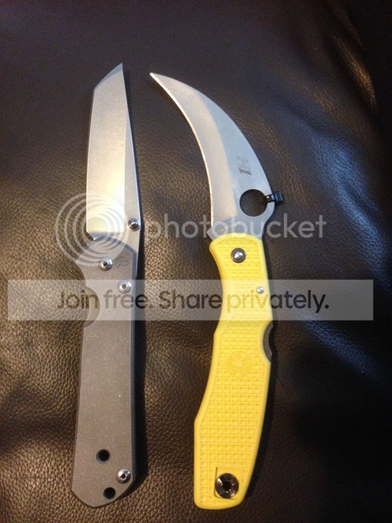 3- Spyderco Spyderhawk - salt series with the "rust proof" H1 steel- discontinued for awhile now and the only ones around are selling for $180+. This one has been carried and used - has some scratches on blade (h1 scratches easy for some reason) and scuffs on pocket clip. Perfect user. Smooth action, scary sharp, solid lock up. It's a touch off center but not rubbing. Comes with box.