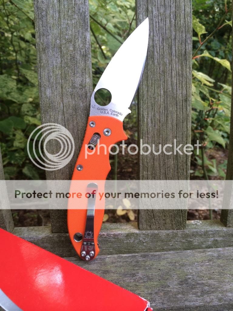 Finally we have a Spyderco Manix 2 Orange FFG S30V Sprint run. I am the second owner on this and never carried it, but the previous owner cut a sharpening choil into the knife it appears to have the factory edge which is very sharp. $135 SOLD