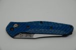Benchmade 940 (Green aluminum) with custom DOAT blue carbon fiber twill scales