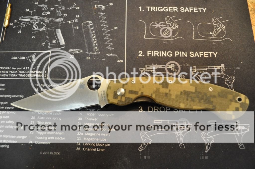 Up for sale is a Spyderco Military digital camo scale and satin blade. Has been carried and sharpened to a wicked edge on a Edge Pro. The black paint came off of the clip pretty quick so I just stripped the clip.