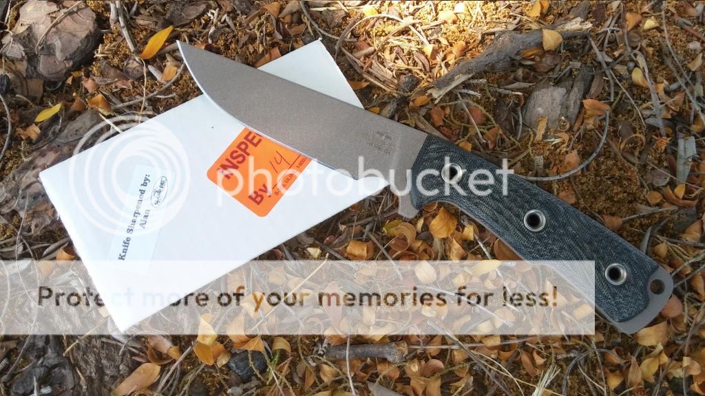 This R4 features a Full Flat Grind and has a Straight Spine. The color combo is Desert Sage/Black Canvas Micarta. The lighter coloring toward the tip of the blade is just the sun hitting that spot. Nice black canvas slabs with good character on the handle. Comes with the factory cardboard sheath only. $175
