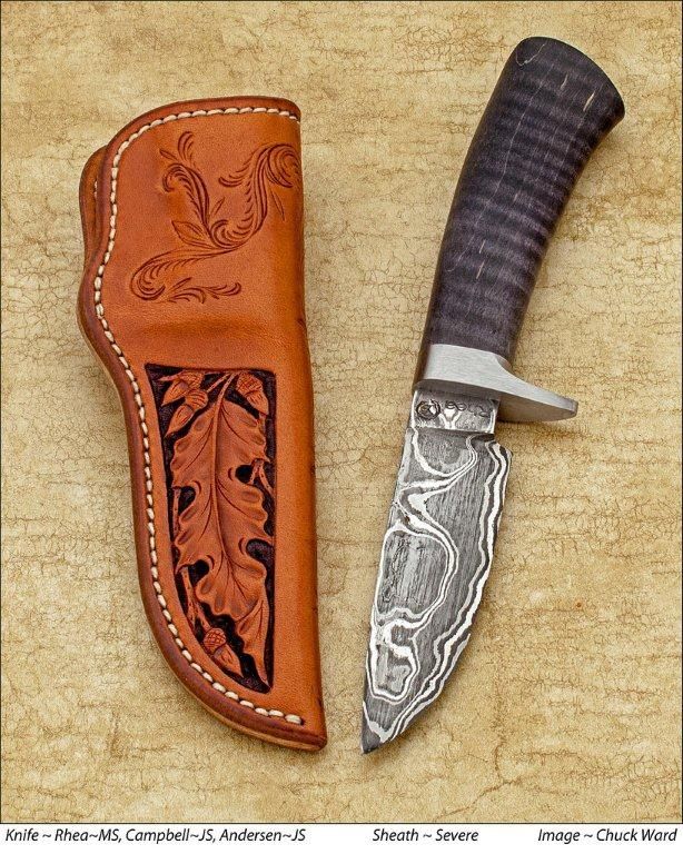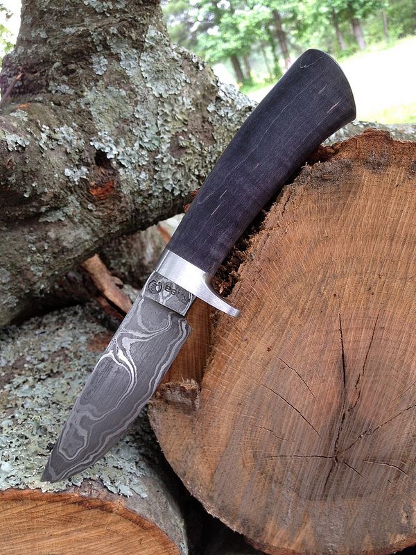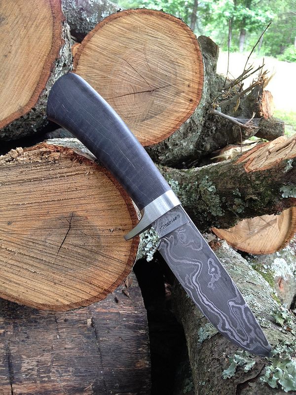 The blade was forged this year by Doug Campbell from traditional Damascus materials with the added ingredient of Meteorite which he got in Hawaii.