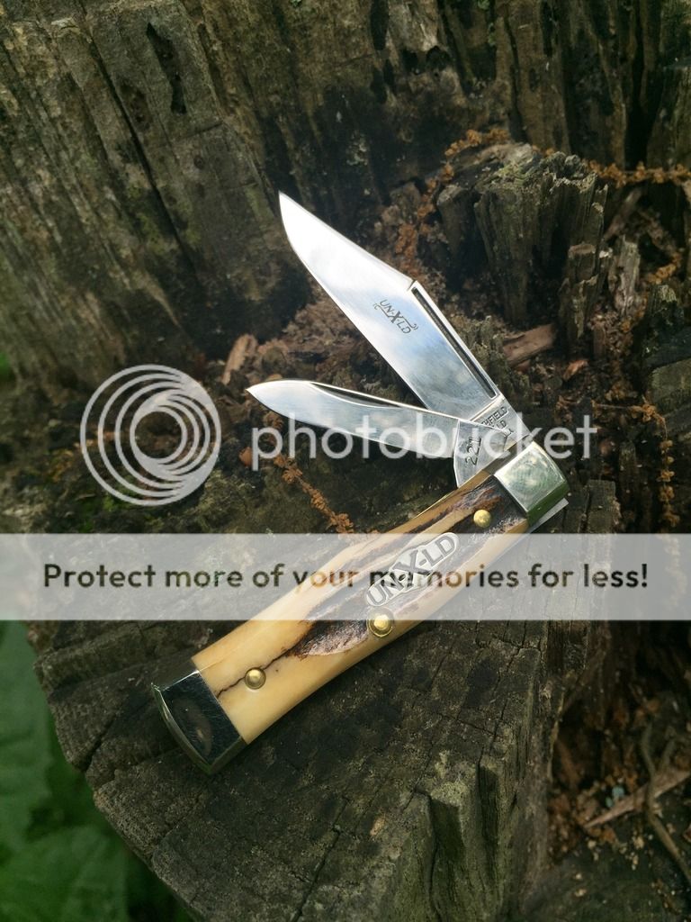 The blade has some nice patina from cutting up some steaks. The pen blade has a little patina thanks to a kiwi or two. Great walk and talk and a solid lock up. Price $100.00