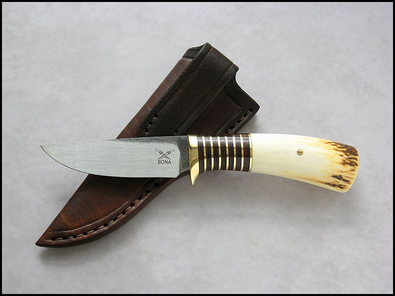 Bona The Art of Harmony Feedback: +31 / =0 / -0 Joined Apr 27, 2006 Messages 1,158 May 25, 2017 #1 Hello. Today I have sweet knife for sale steel – high carbon NC6 /3.0 mm [0.118″] length – 175 mm [6.890″] blade – 80 mm [3.150″] handle – brass, leather, stag sheath – leather Price – 195 USD plus 18 USD for International Priority Mail SOLD Payment - Paypal or Payza Last edited: Sep 24, 2017