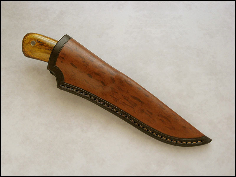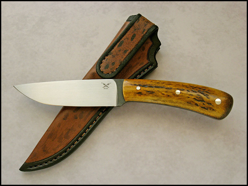 Hello. This is my new knife for sale. steel - 52100 carbon steel / 3.2 mm [0.126"] length - 236 mm [9.291"] blade - 119 mm [4.685"] handle - dyed stag, nickelsilver sheath - leather Price - 212 USD plus 18 USD for Global Express SOLD Payment - Paypal