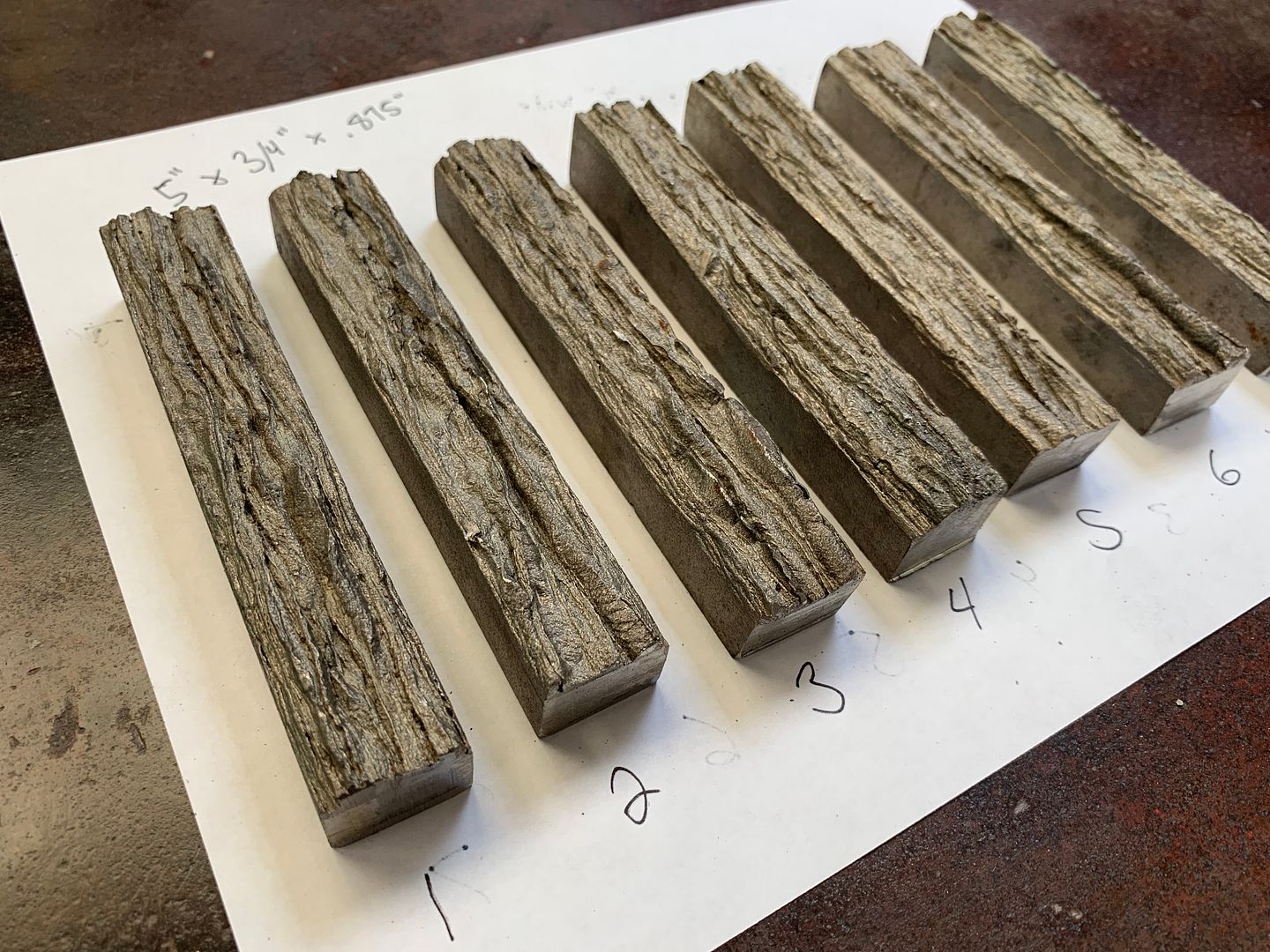 This is a forged edge off of a thick titanium plat, I've never seen this stuff before, and I doubt I ever will again. It's some older stuff I got from a machinist estate.