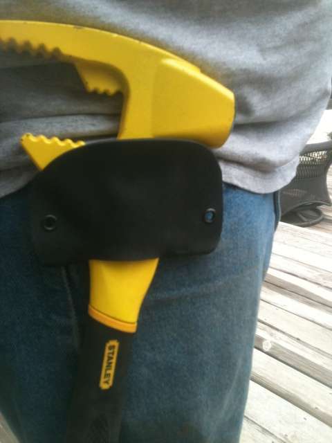 Last week I signed up to go to Joplin with my church to spend a day helping with a little clean up and demo. So, I figured I had better pick up one of those Stanley FUBAR's that I had been wanting for a while. After I picked it up and carried it a bit I decided that it was going to need something to help me carry it. That's when I decided to make a little sheath for it with Kydex.