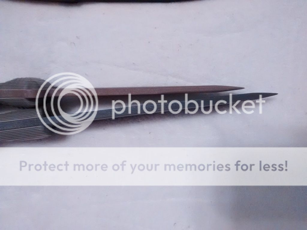 Tip, blade length comparison... I guess. I don't know what I'm doing. The stabby, pokey ends. Next to each other for some unspecified reason.