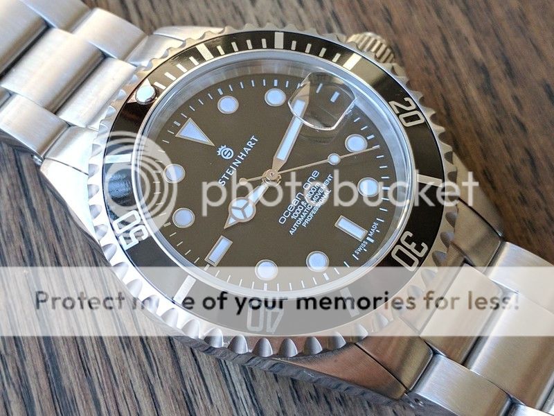 I have a very nice condition Steinhart Ocean 1. An awesome Swiss Automatic with a workhorse ETA 2824 movement. Sapphire Crystal, screw-link bracelet, 42mm diameter. This has not been worn much, looks and works excellent. Some very small everyday wear marks on it, no dings or gouges. Sized for my 7.5" wrist, I haave the extra links, box, etc