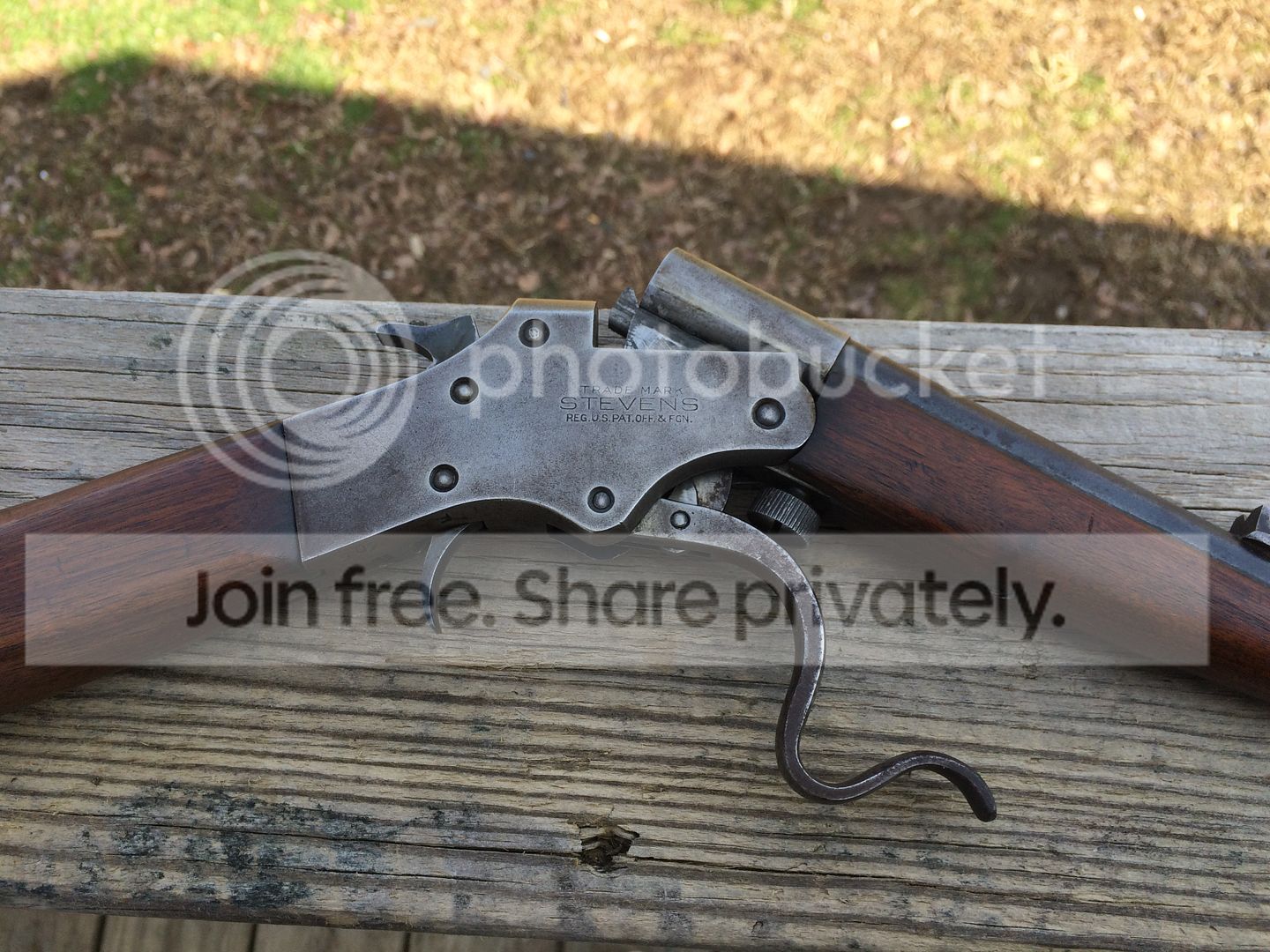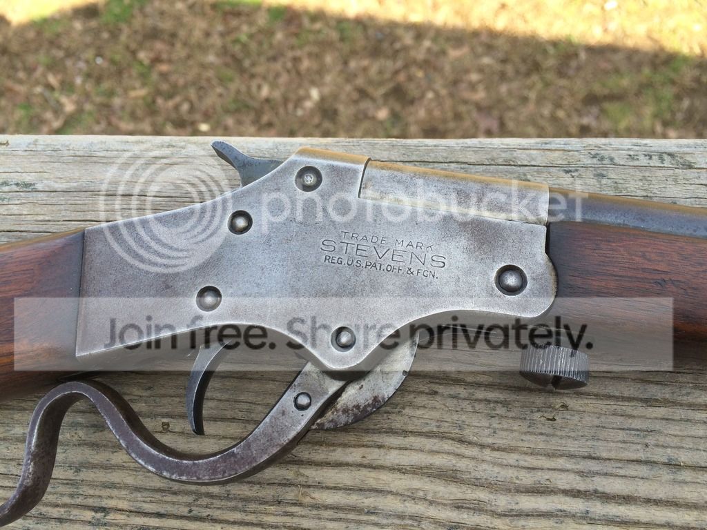 Stevens Model 12 Marksman Single Shot Boys Rifle, Its in good overall condition been stored in the safe functions an shoots properly, has a cpl chips out of the bottom plastic butt plate great vintage gun, single shot lever breakdown.. This gun has been left in its original rustic ,vintage condition..for more info of its originality click here http://www.nramuseum.org/guns/the-g...model-12-marksman-single-shot-boys-rifle.aspx