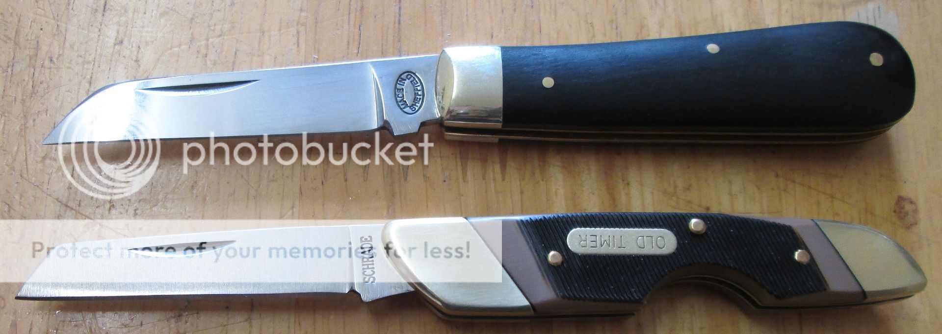 I guess the best I can do is sheepfoot is flared, lambsfoot is tapered, coping is parallell and chopped straight, and wharncliffe has a long curve to the point. Except sheepfoots aren't always flared. Oh, well. No use looking for certainty in knife nomenclature, though I keep doing it.