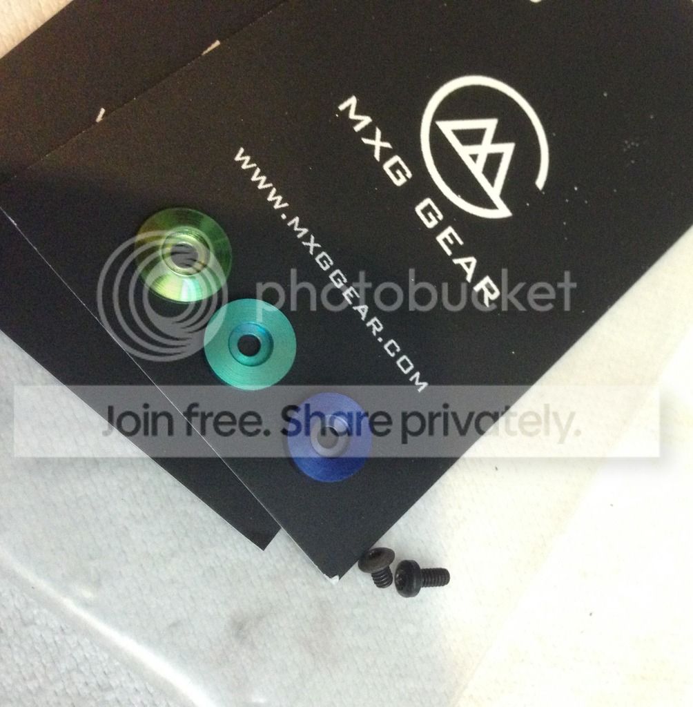 2- (3) anodized lock bar stabalizers. The green domed one is pete grey and the others are mxg gear. Normally go for around $12-15 each. These will fit zt, strider, hinderer and others with similar lock bar stabilizers. Comes with two screws as well